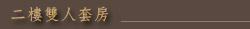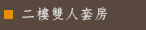 位於二樓的雙人套房位在建築的東側,恬靜而舒適,房內各式設備齊全,幸福而溫馨的感受,將是細膩的您所喜歡的!
