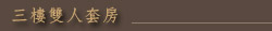 位於三樓的雙人套房位在建築的東側,恬靜而舒適,房內各式設備齊全,幸福而溫馨的感受,將是細膩的您所喜歡的!