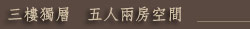 三樓的獨層兩房包含二人房及三人房的獨立空間,一套乾濕分離的獨立衛浴。隨著獨層管理的規劃,搖身一變,成為最佳的創意空間。最適合孝親或親子組合的造訪喔!